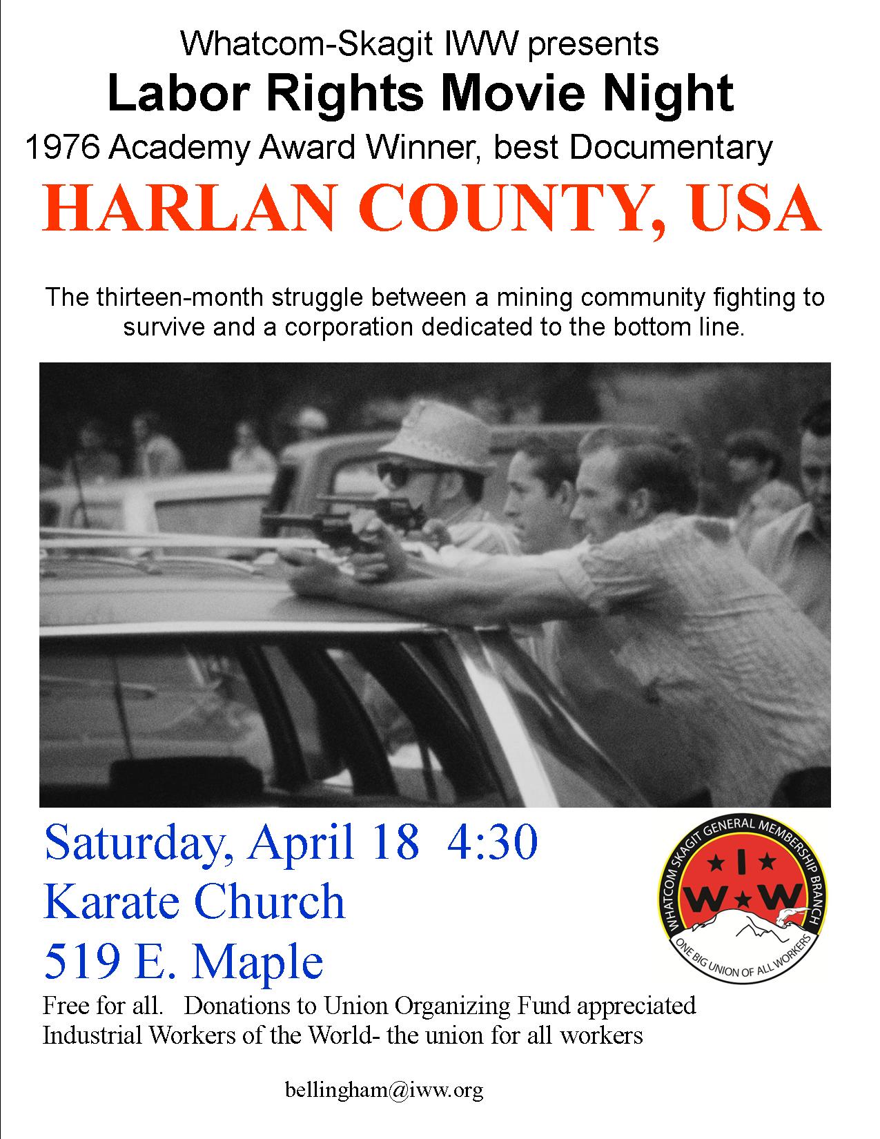 IWW presents our final film in this series this Saturday at 4:30pm at Karate Church, 519 E Maple, Bham. Its a must-see workers vs the corporation’ documentary. in a coal mining community in Appalachia. 1973 Brookfield KY Strike, scabs, gun thugs, woman power, community stress, solidarity.