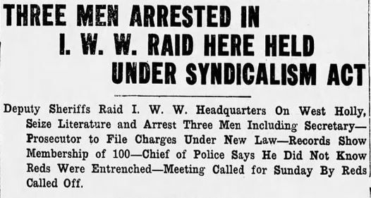 We added a new page to this website, the story of Bellingham’s 1919 Criminal Syndicalism trial of 4 IWWs. This was the first prosecution under the state’s new law, and it was covered extensively in the Bellingham Herald. We tell the story here, and include some newspaper clippings from this little-known episode in local history.